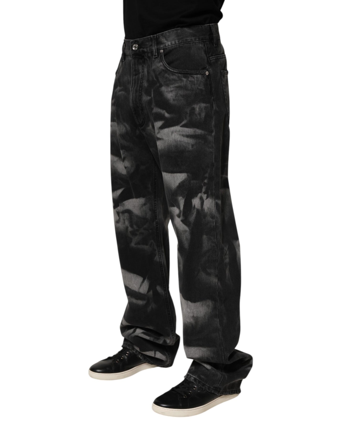Gorgeous brand new, 100% Authentic Dolce & Gabbana Jeans featuring a unique black marbled effect. Expertly crafted from premium cotton denim, these jeans combine durability with a bold, fashion-forward aesthetic. Designed with a classic five-pocket layout and zip-button closure, they offer a comfortable fit while adding a distinctive edge to your wardrobe. Perfect for casual and statement looks alike.