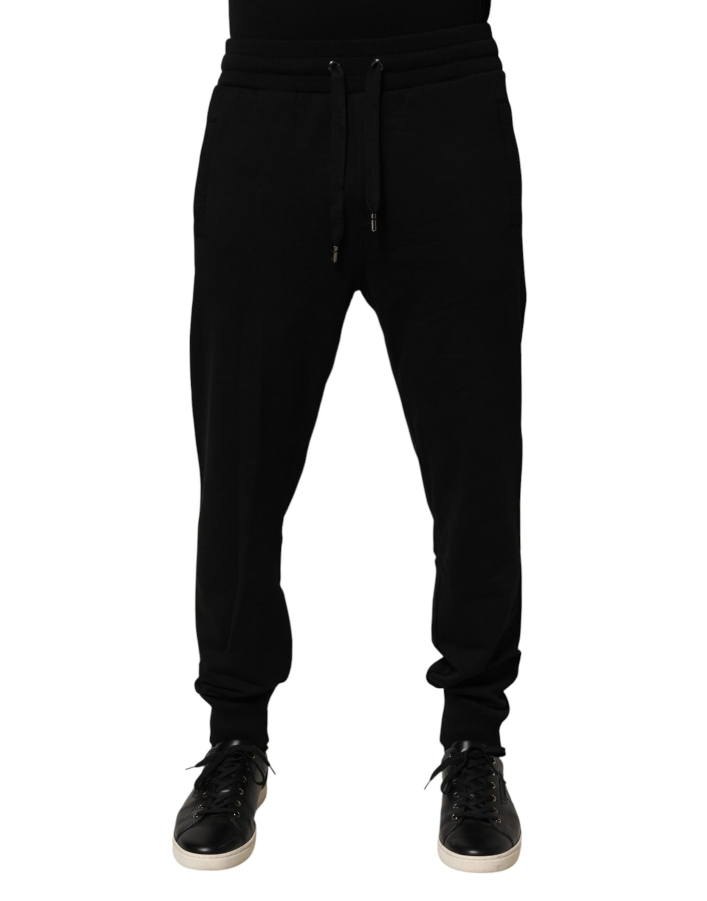 black jogger sweatpants feature an DG logo print and are crafted from soft cotton for ultimate comfort. Combining luxury design with casual streetwear appeal, they’re perfect for relaxed yet fashion-forward looks.