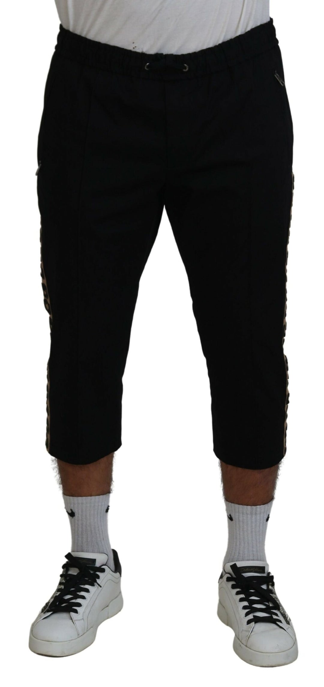 Dolce & Gabbana Black Cotton Elastic Waist DG Logo Cropped Pants