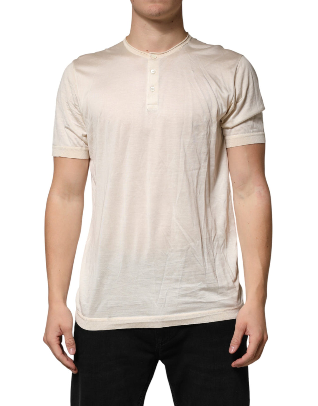 Dolce & Gabbana Off White Silk Men GOLD Dress Formal Shirt