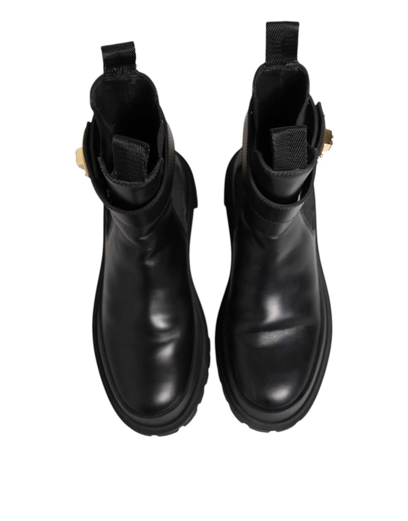 Gorgeous brand new, 100% Authentic Dolce & Gabbana shoes feature a sleek black calfskin leather design with a bold DG logo strap detail. These ankle boots combine luxury craftsmanship with edgy elegance, offering a refined silhouette, sturdy sole, and secure strap closure. Perfect for elevating both casual and dressy looks with signature designer flair.