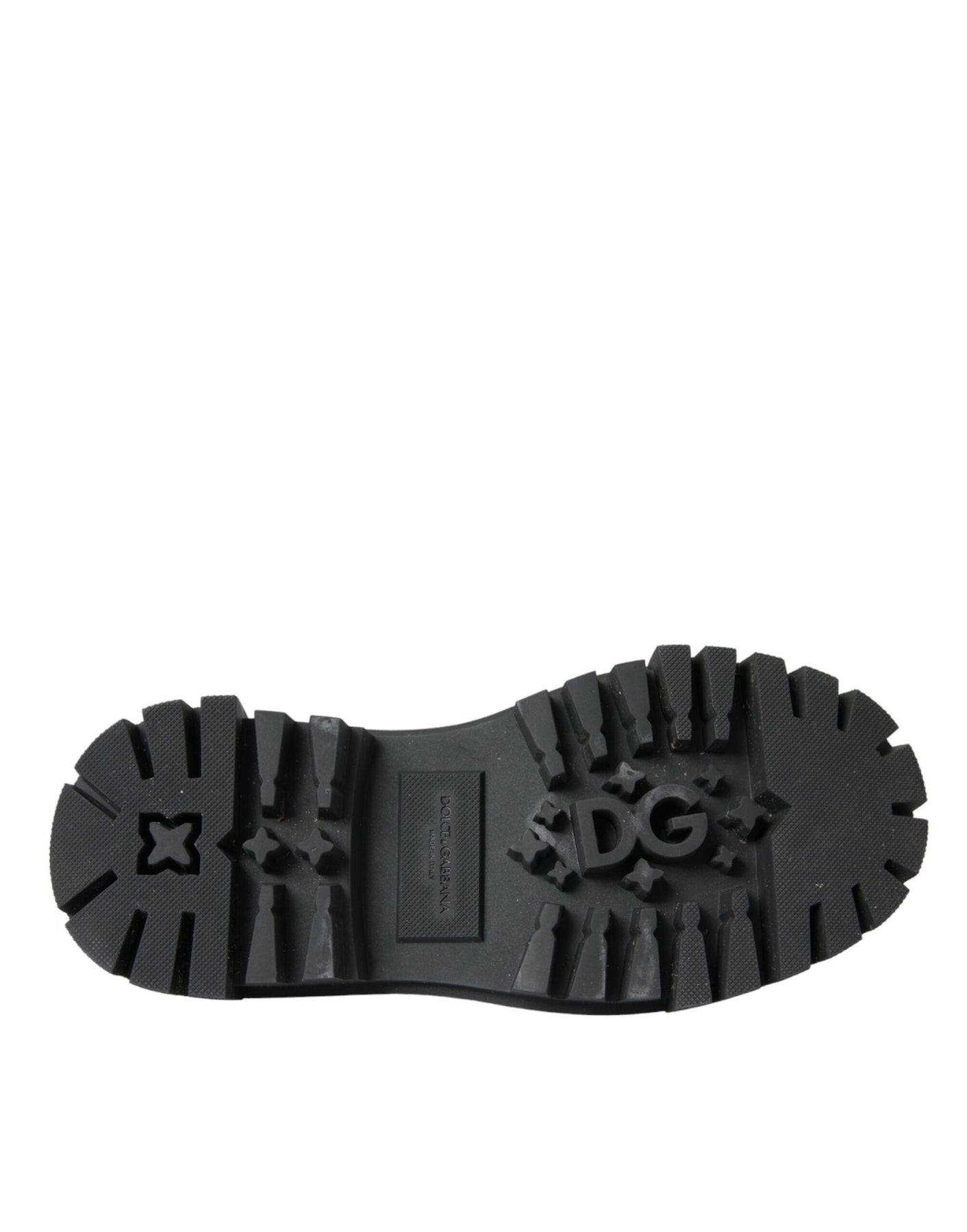 Gorgeous, brand new with tags 100% Authentic Dolce & Gabbana black trekking derby. The model is made of soft polished leather, and the lapel-style inserts on the side panels are made of dense rubber. The masculine character of the pair on a chunky tread sole is balanced by the decorations, a pattern of shiny gold studs on the cape.