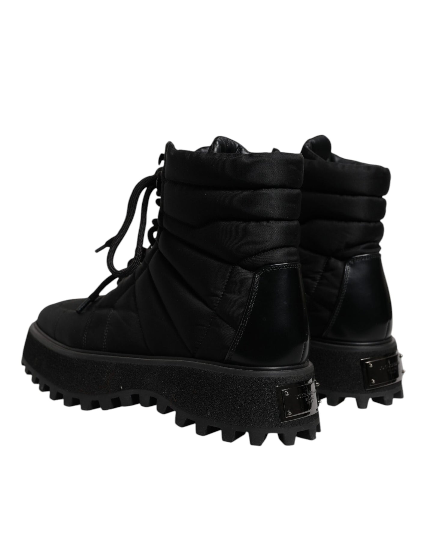 Dolce & Gabbana Black Padded Mid Calf Lace Up Boots Shoes