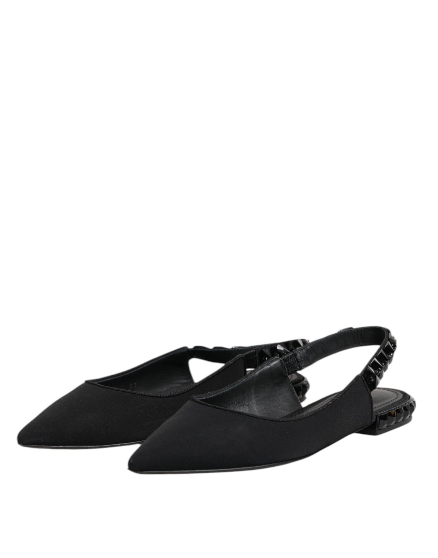 Gorgeous preowned, 100% Authentic Dolce & Gabbana Charmeuse slingback flats featuring studs at ankle strap and heel.