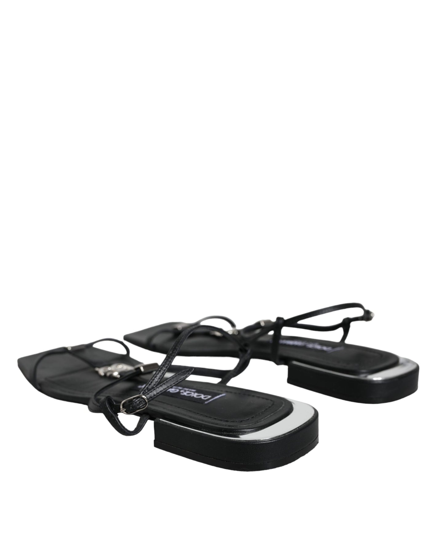 Dolce & Gabbana Black Leather Logo Ankle Strap Keira Sandals Shoes