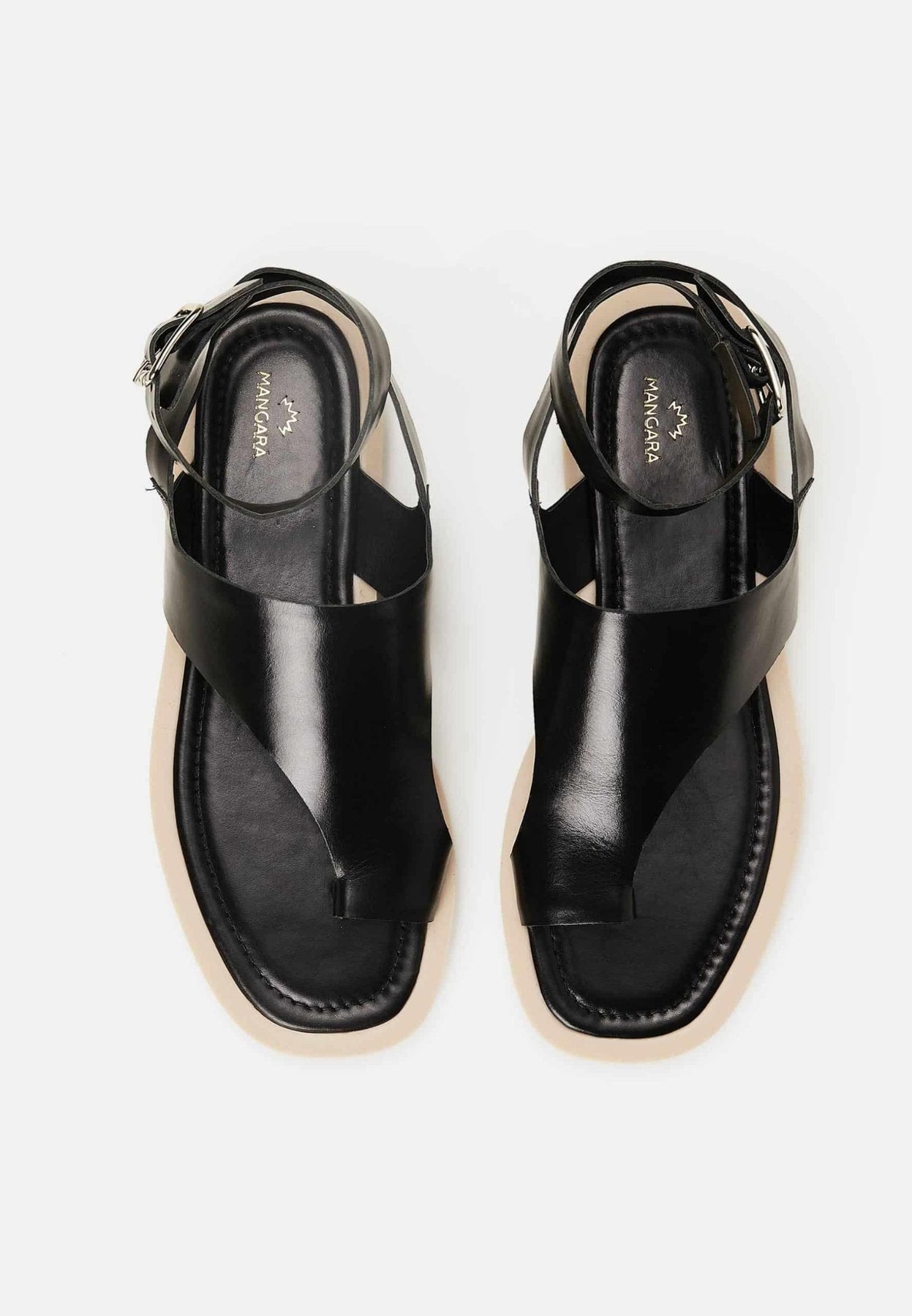 Mangará Atelier Black Leather Toe-Ring Sandals – Handmade Women’S Flat Sandals