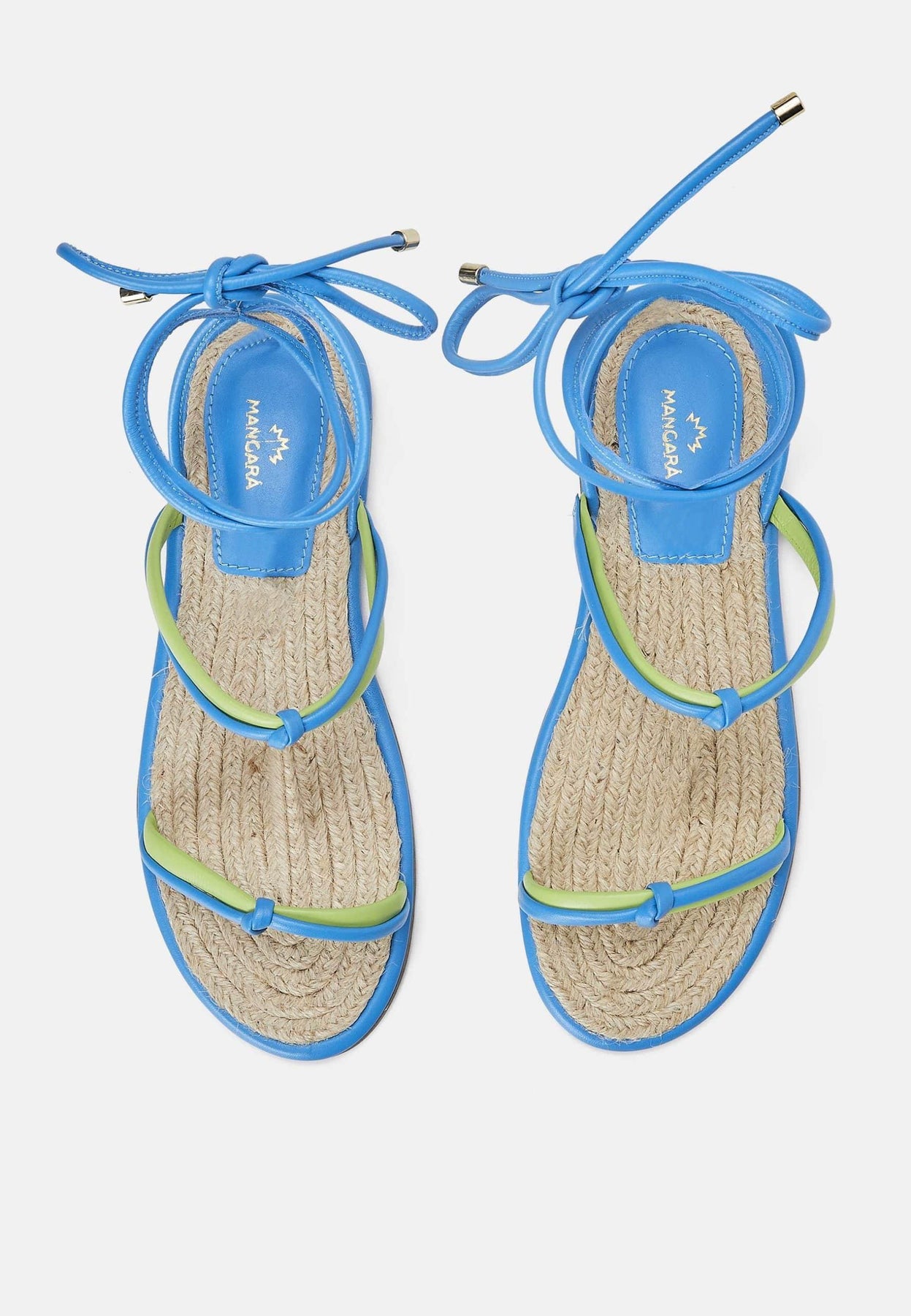 Mangará Atelier Blue Leather Lace-Up Sandals – Handcrafted With Natural Raffia Insole