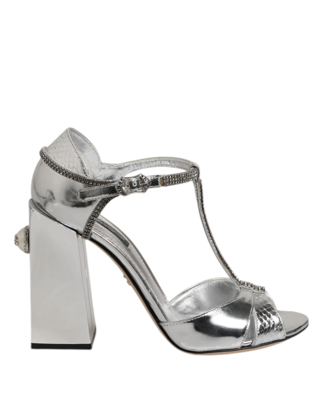 Dolce & Gabbana Silver Leather T-strap Heels Sandals Shoes