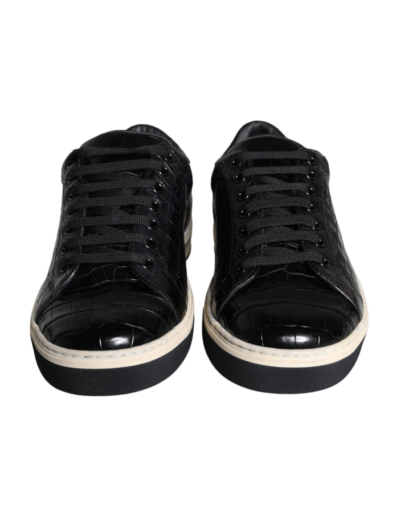 Dolce & Gabbana Black Leather Men Low Top Sneakers Shoes