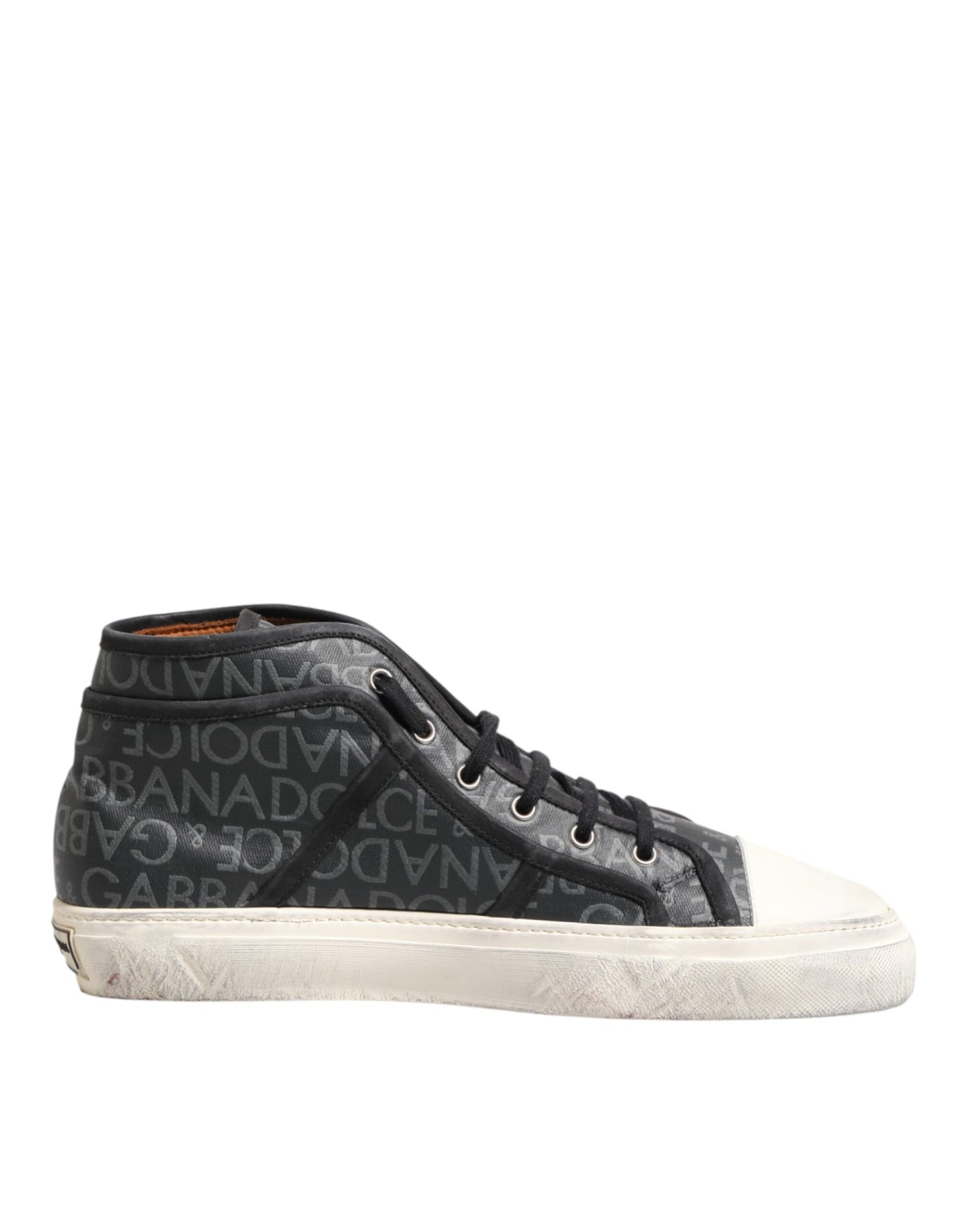 Dolce & Gabbana Black White Canvas Logo Mid Top Sneakers Shoes