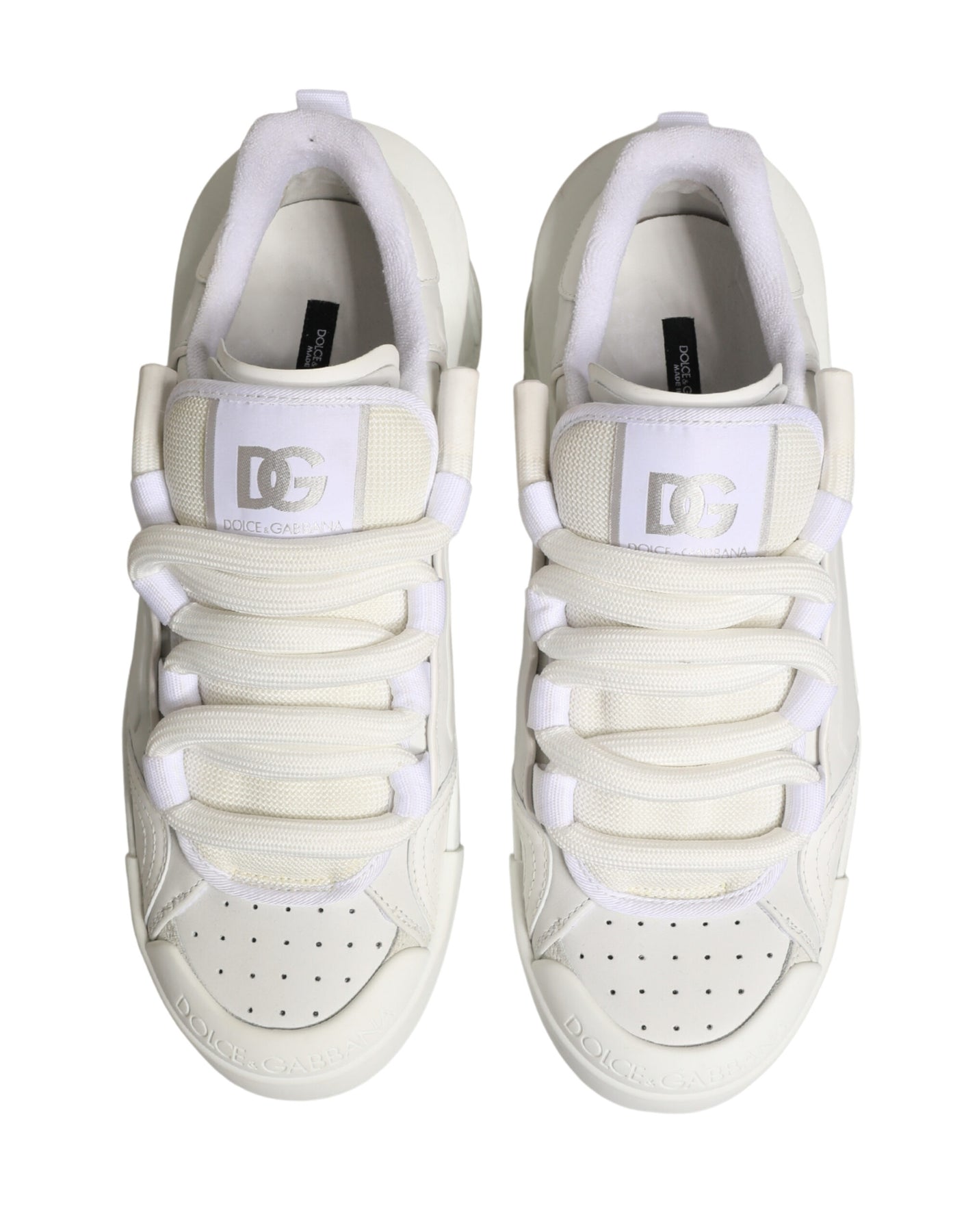 Gorgeous brand new, 100% Authentic Dolce & Gabbana low-top sneakers. Crafted with a premium leather upper in a clean white colorway, these sneakers feature a modern chunky sole, padded tongue and collar, and signature Dolce & Gabbana branding on the toe and tongue. Designed for everyday luxury comfort, they pair effortlessly with casual and smart-casual outfits.